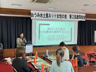 今後の活動計画については、女性の視点から土地改良区をもっと広く知ってもらうための情報発信や、農業農村整備に対する理解が進むような活動を行っていくこととし、当会の理事であり女性の会顧問青田朋恵氏が「とにかく会員の皆さんが楽しむことが一番です。滋賀の農業農村に誇りを持ち、滋賀らしい女性の会を全国にアピールしていきましょう!」と力強く挨拶されました。